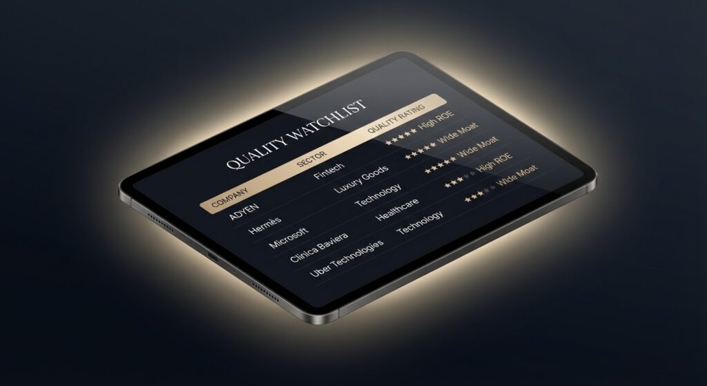 « En Bourse, l’argent ne se fait pas en achetant des entreprises médiocres à bon prix, mais en attendant le bon moment pour acheter des entreprises exceptionnelles. Voici votre liste d’attente. »